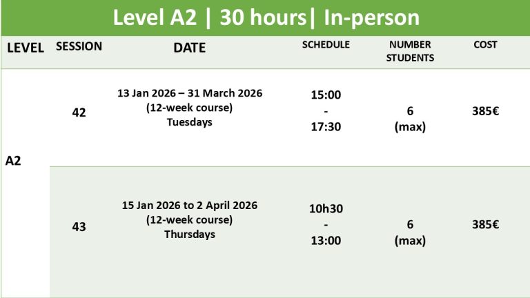 At the A2 level, students can expect a course focused on 80% speaking and 20% grammar.